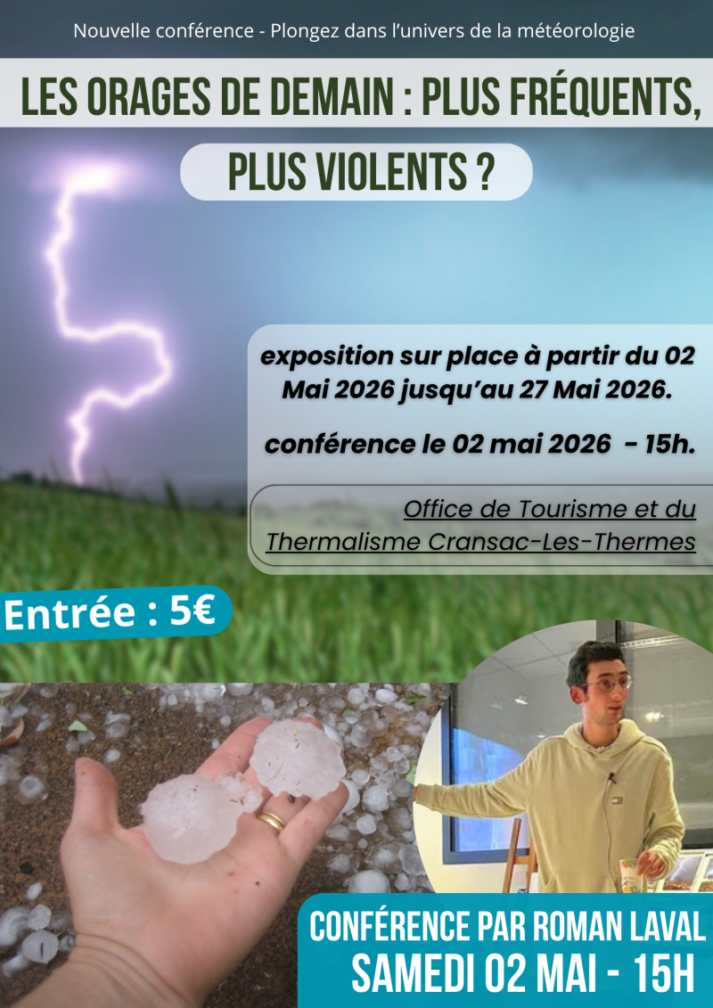 Une nouvelle exposition photographique consacrée aux orages accompagnera cette conférence.